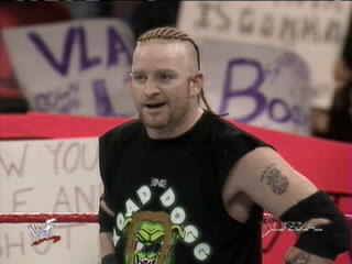 Road Dogg came to the WWF in 1994 as the sidekick for Jeff Jarrett. He was known that time as The Roadie. A few years later he was known as Jesse Jammes or The Real Double J with a country singer gimmick and was later transformed into Road Dogg Jesse James. Road Dogg was once part of one of the most successful WWF Tag Teams, The New Age Outlaws, together with Badd Ass Billy Gunn. The NAO became even more popular and outrageous when they started co-operating with D-Generation X members, Shawn Michaels, Triple H and Chyna and later to join, X-Pac. As a team the D-Generation X did many strange and outrageous stuff. Never to be forgotten. Well as many teams does, D-Generation X split up and went separate ways. And guess what happened. In late 1998, Road Dogg became the 3rd ever Hardcore Champion and in early 1999 he also held the Intercontinental title, but Road Dogg was bigger as a tag team wrestler. After a couple of months, he was reunited with Mr. Ass, and The New Age Outlaws was back again, strong as always. After seeing the Acolytes vs. NAO match at Royal Rumble 2000, I was sure, that the NAO was here to stay, but I was wrong. Once again the NAO split up, reuniting only for one match together with Triple H and Chyna against the Radicalz in late 2000. Around October-November Road Dogg was transformed into a rap-singing wrestler, as he teamed up with Ron "K-Kwik" Killings. Very entertaining, but I prefer the old Road Dogg! Armageddon 2000 was his last WWF event he competed in. He was released from his contract in late January, due to undisclosed reasons, which later meant, his drug use was beginning to affect his in-ring performance. He now wrestles in NWA: TNA as B.G. James.